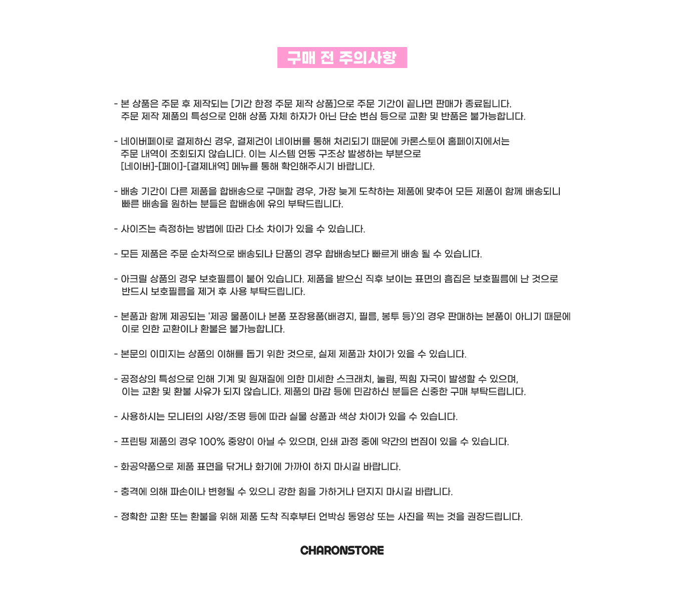 *상품 하자 및 오배송의 경우 반품 교환 배송비는 카론스토어가 부담합니다.