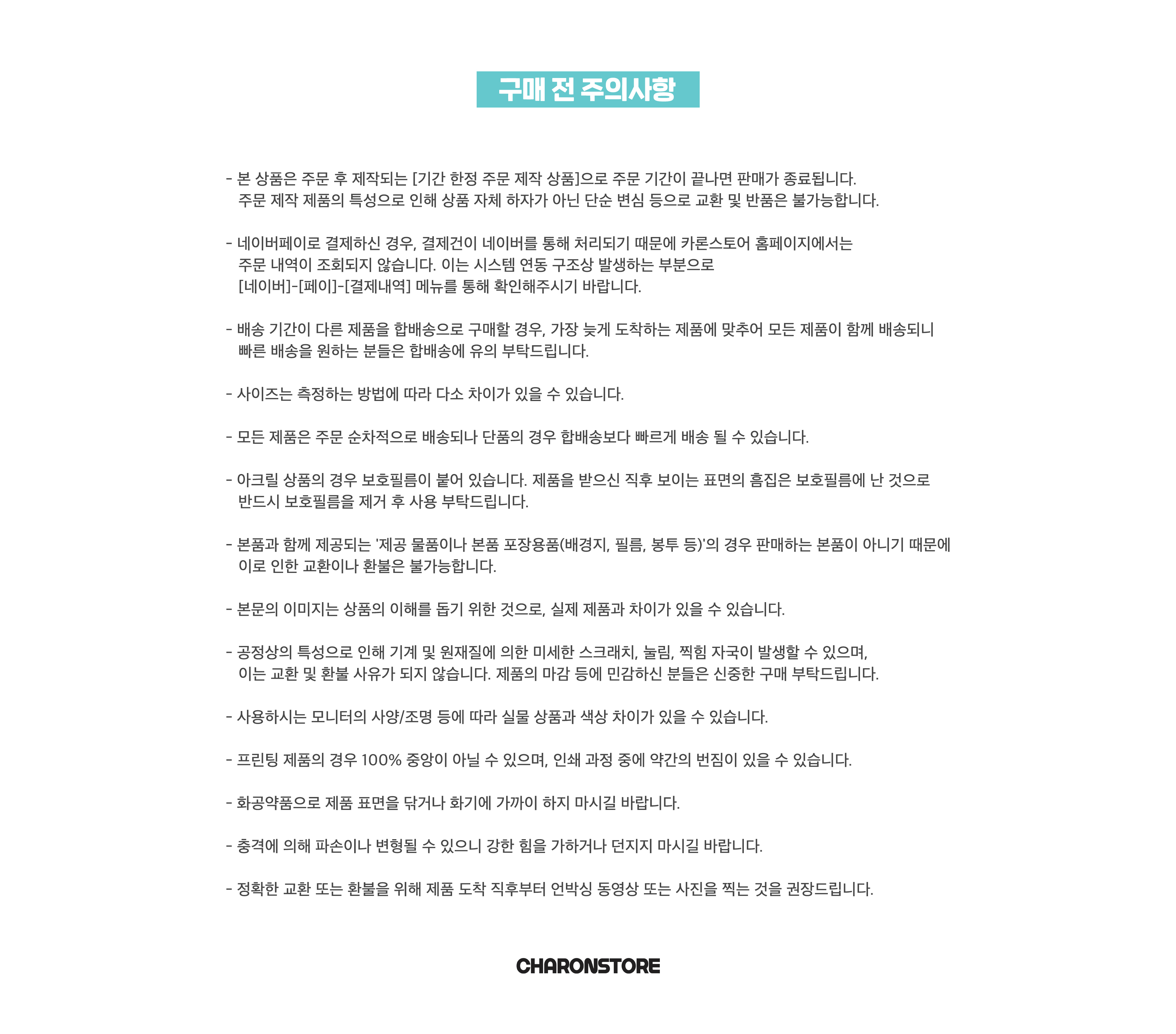 *상품 하자 및 오배송의 경우 반품 교환 배송비는 카론스토어가 부담합니다.