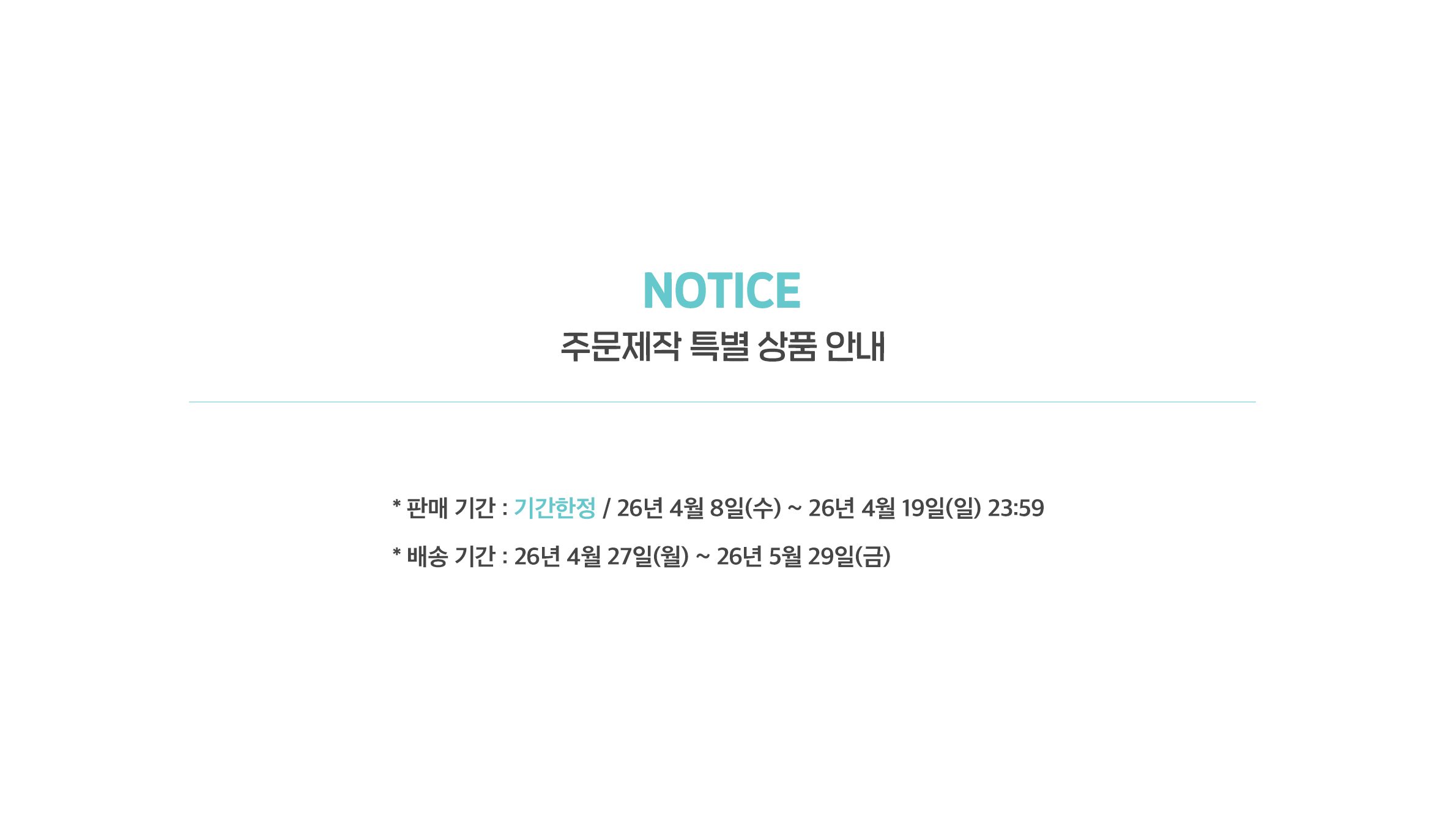 - 주문제작, 특별판매, 이벤트기간일 경우 기본 배송일 이상 배송기간이 소요(2주~최대 세달)됩니다.