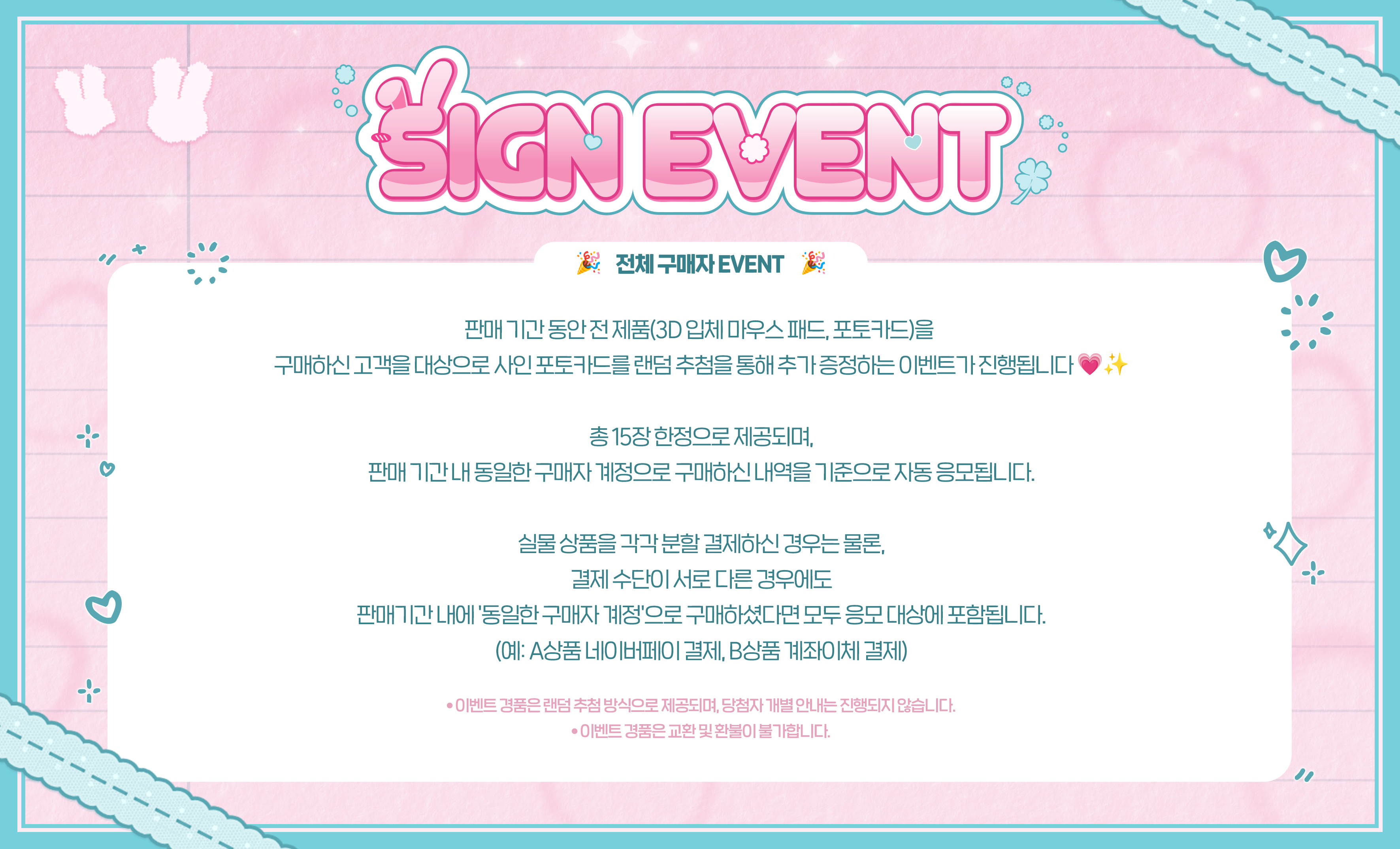 - 특별판매기간을 제외한 상품이 배송이 늦어지는 경우 개별 연락을 통해 배송 상황을 안내 해 드립니다.
